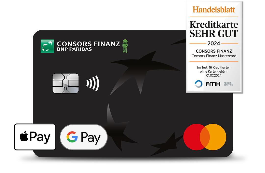 Mit der Consors Finanz Mastercard profitierst du von 0% Zinsen, wenn du innerhalb von 3 Monaten die Teilzahlung nutzt.